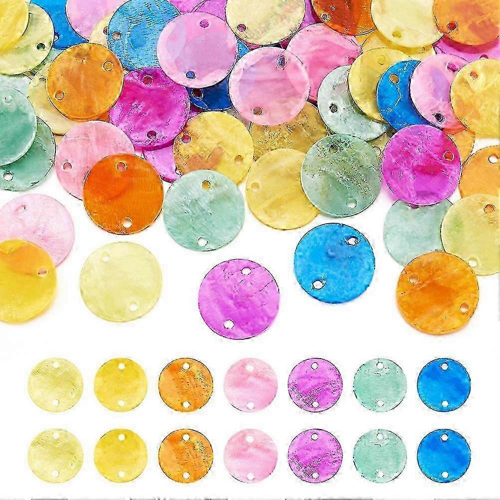70Pcs 7 Colors Spray Painted Natural Capiz Shell Connector Charms, Disc, Mixed Color