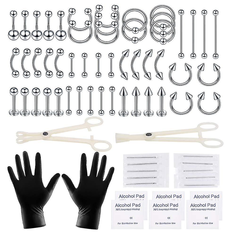 70pcs Piercing Kit Stainless Steel Opal Lip Nose Tongue Tragus Cartilage Eyebrow Belly Rings Piercing Jewelry