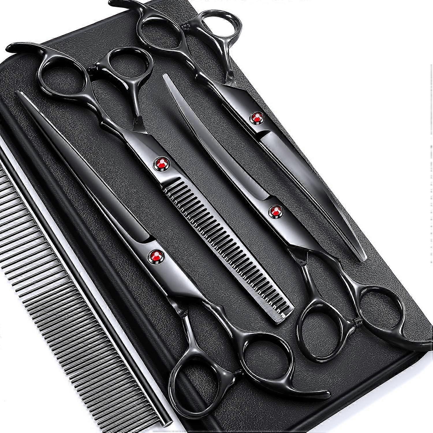 7.0in Less Steel 6 In 1 Dog Ging Scissors Kit, 4cr Tium Coated Straight Thinning Curved Shears Comb Set For Dog