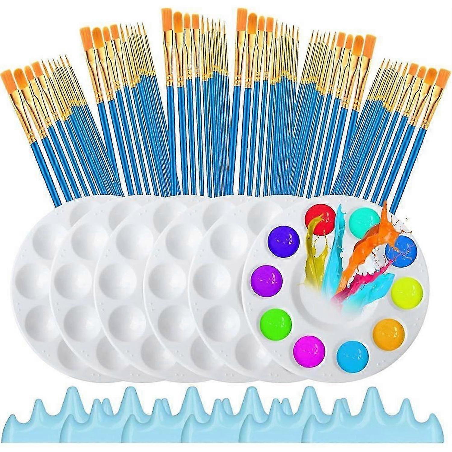 72 Pcs Paint Brush Sets, 60 Pieces Paint Brushes and 6 Painting Palette 6.3 Inch, for Watercolor Painting, Ink Painting