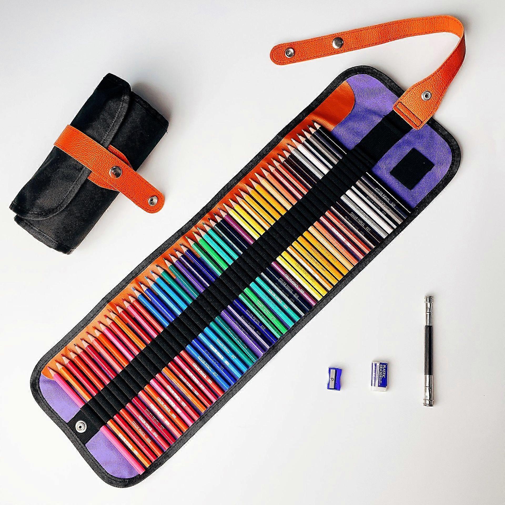 72 Drawing Pencils Art Set, with Roll Canvas Bag, Professional Colour Mix Painting and Sketching, Wooden Colouring Pencils for Colouring Books, Drawin