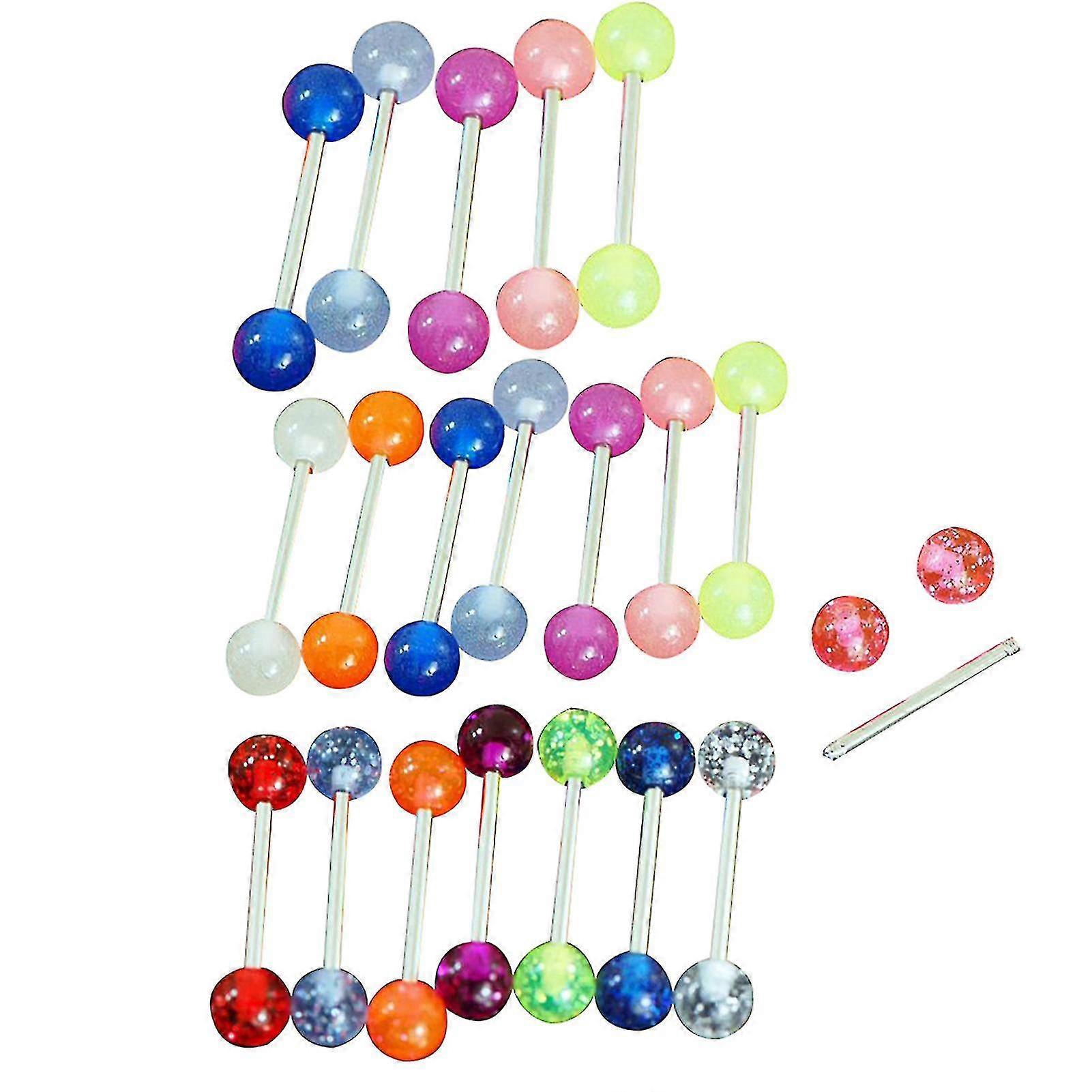 7/20Pcs Sequins Luminous Nipple Tongue Bar Barbell Ring Body Piercing Jewelry