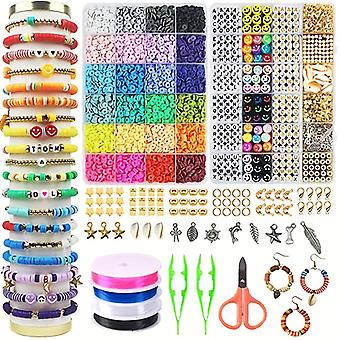 7200 قطعة الطين الخرز سوار صنع كيت Preppy الصداقة شقة البوليمر الخرز مجوهرات صنع مجموعات مع السحر وسلاسل مرنة الحرف الهدايا مجموعة ل