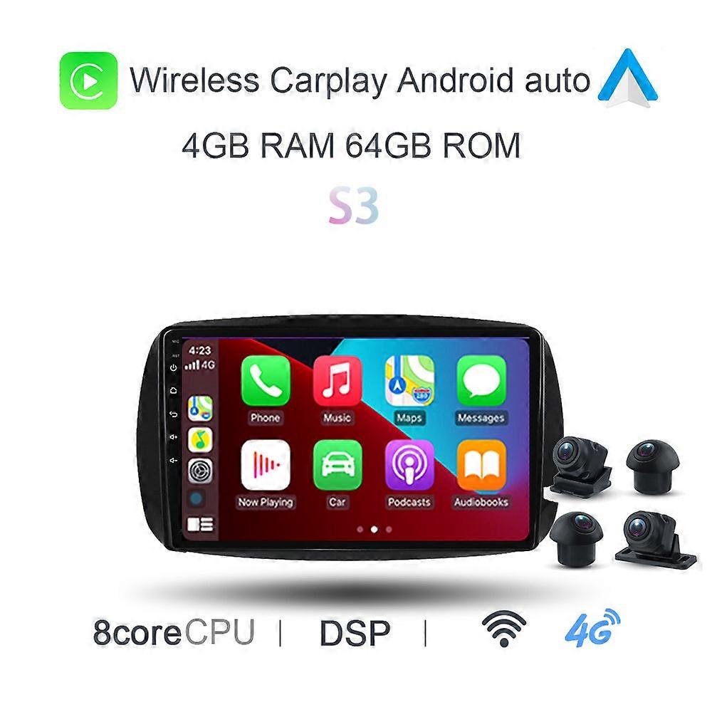720P 360 IPS 6G+128G Carplay DSP Android 11.0 Car DVD Player GPS map WIFI Stereo Radio For Benz Smart Fortwo 2015 2016 2017