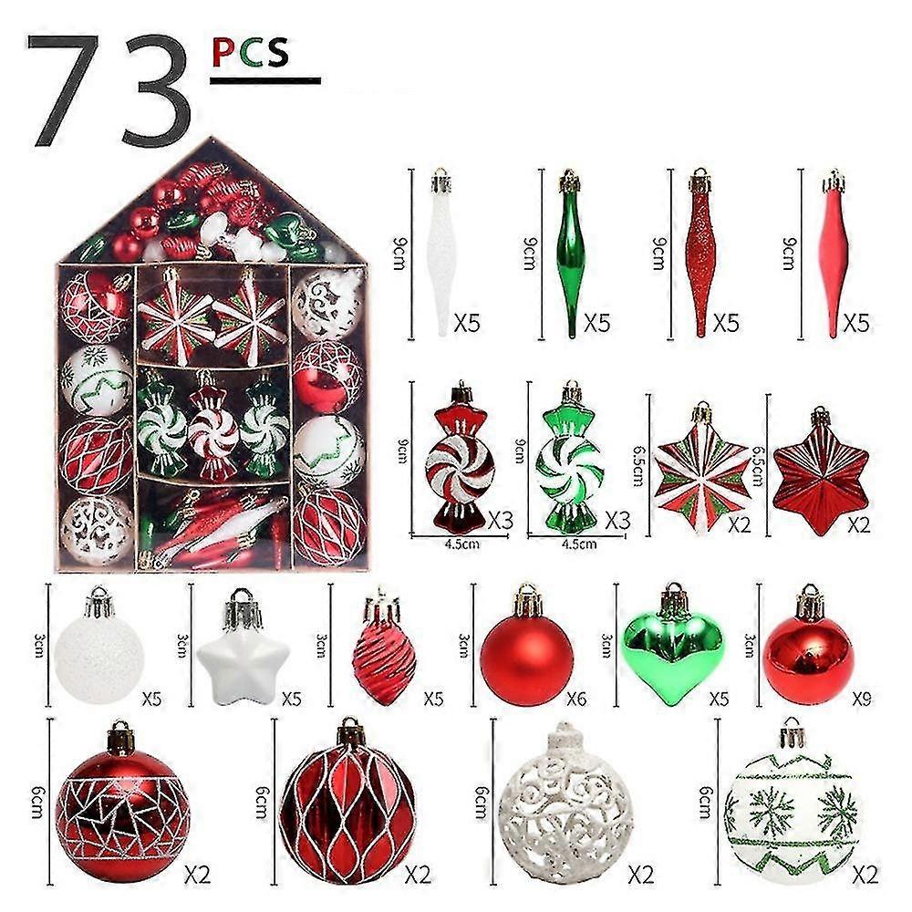 73pcs Christmas Baubles 3-9cm Green and White,Christmas Tree Hanging Decoration,Christmas Tree Star
