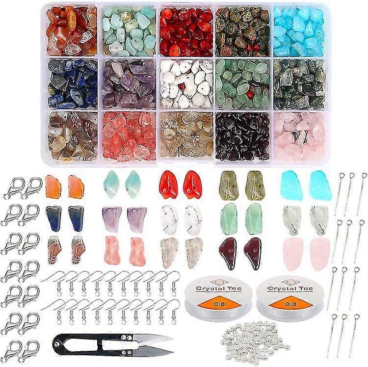 750 Pcs Irregular Chips Stone Beads 15 Colors Natural Gemstone Beads Kit Ear Hook Lobster Clasp Jewelry Making Gemstones