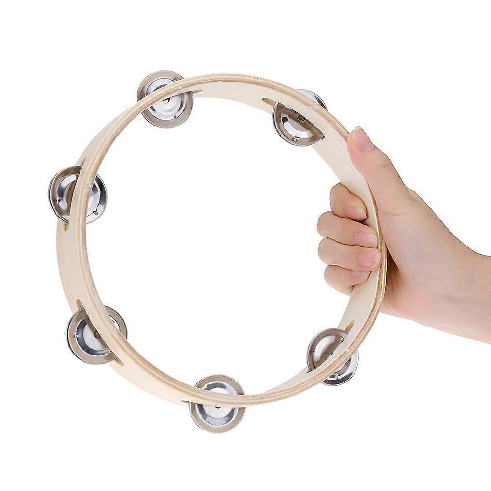 8 Inch Kids Hand Held Wood Tambourine with Single Row Metal Jingles, Educational Musical Percussion Toy for Children Party Dancing Games