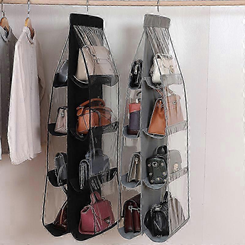 8 Pockets Hanging Purse Handbag Organizer Clear Hanging Shelf Bag