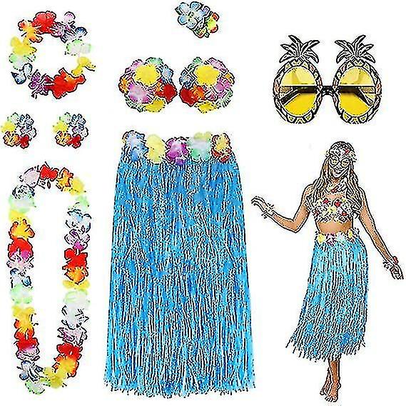 8 Pack Hula Skirt Costume Accessory Kit For Hawaii Luau Party