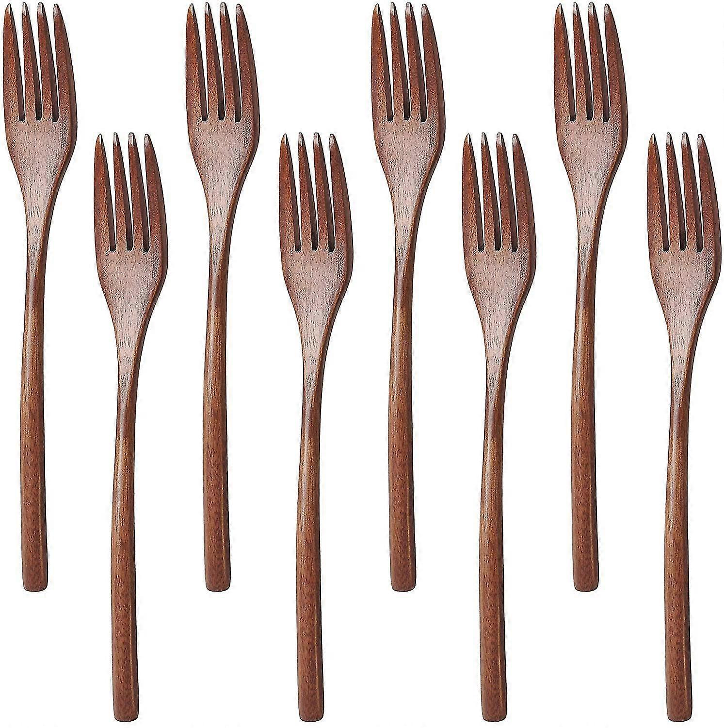 8 Pack Wooden Forks, 9 Inch Long Handle Handmade Kitchen Utensil