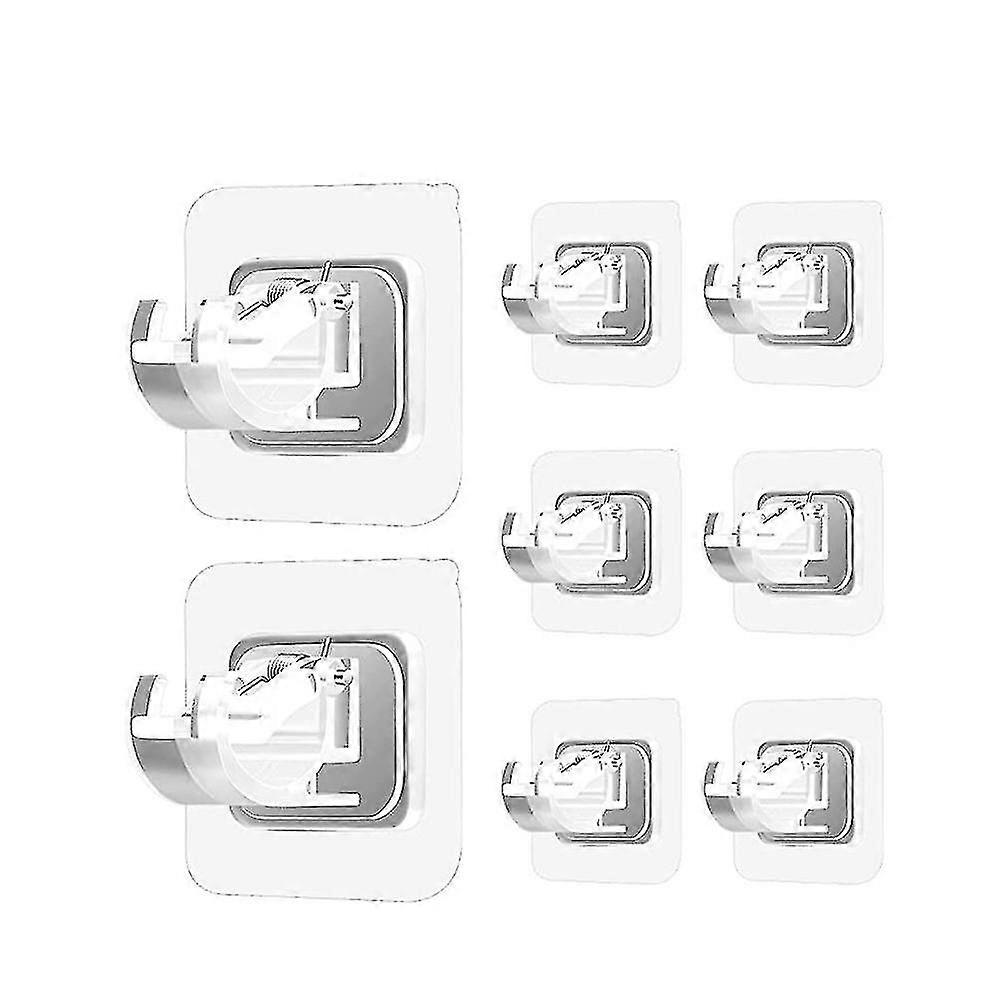 [8Packs Curtain Rod Brackets]You will get 8 packs no drill drapery brackets holders. very strong adhesive and durable, will stick well after extensive use. Suitable for curtain rods or towel rods with a diameter of 1-2 cm.[Quality Materials]Made of quality ABS, these curtain rod hooks are stable, durable, and have long service cycles. With a load capacity of 5kg/11pounds, adhesive curtain rod holders can ensure the safety of use.[Home Decoration Curtain Rod Bracket]- Modern design transparent fixed rod bracket, simple and generous appearance, suitable for most home styles, decoration your bathroom/bedroom/living room/office. At the same time, you can also give it as a gift to your family and friends.[Easy to Install] Powerful Adhesive on the backside, easy to install. no need to punch holes, no nails, no damage to the wall. Household Non-drilled Round Rod Fixing Clip, Wall Bracket Bathroom Towel Bracket Curtain Home Organizer Wall Ring Hook Holders Clips.With a self-stick back, easy to install without any tools.Colour: transparent colorMaterial: ABS+metalSize: 6x6cmPackage Contents:8 * HooksOnly the above package content, other products are not included.Note: Light shooting and different displays may cause the color of the item in the picture a little different from the real thing. The measurement allowed error is +/- 1-3cm.