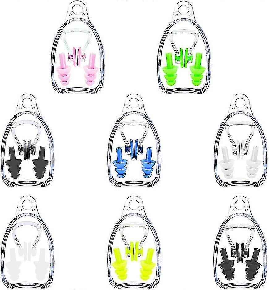 8 Pack Nose Clips And Earplugs Set For Swimming, Swimming Nose Clip With Waterproof Silica Gel For Kids And Adults For Beginner, Multi-color Box Packa