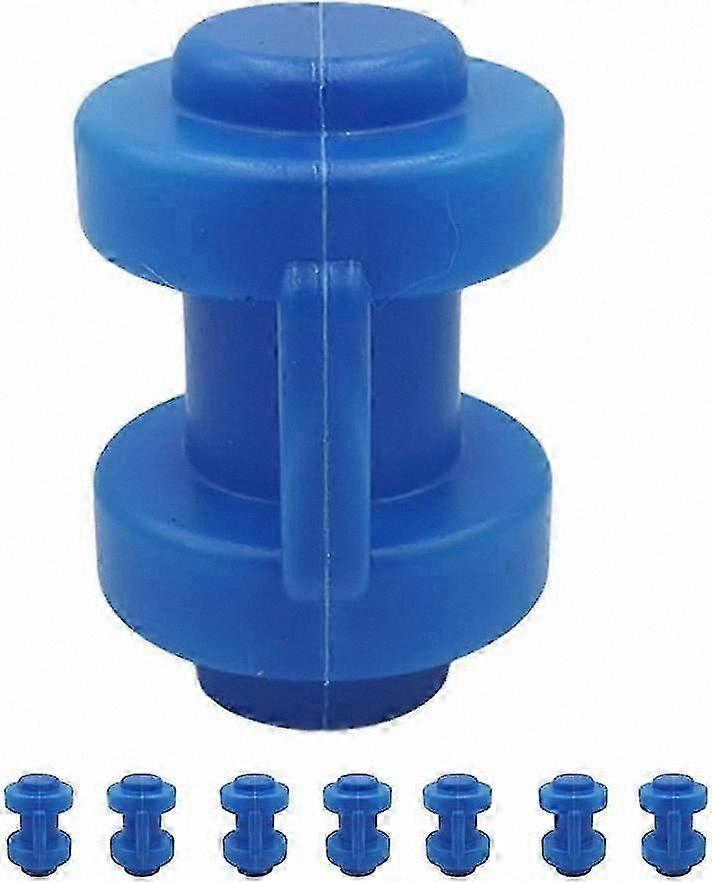 A set of eight blue trampoline end caps with a 25 mm opening. Trampoline caps reduce the risk of pole displacement, and hooks on the outer side of the end caps allow for attachment of a safety net, providing added convenience. High-quality cap made from durable plastic, long-lasting and premium. Fits any standard trampoline with a pole diameter of 25 mm. The cap is an essential accessory when assembling a trampoline, helping to make outdoor trampolines safer and reducing concerns about accidents and injuries.