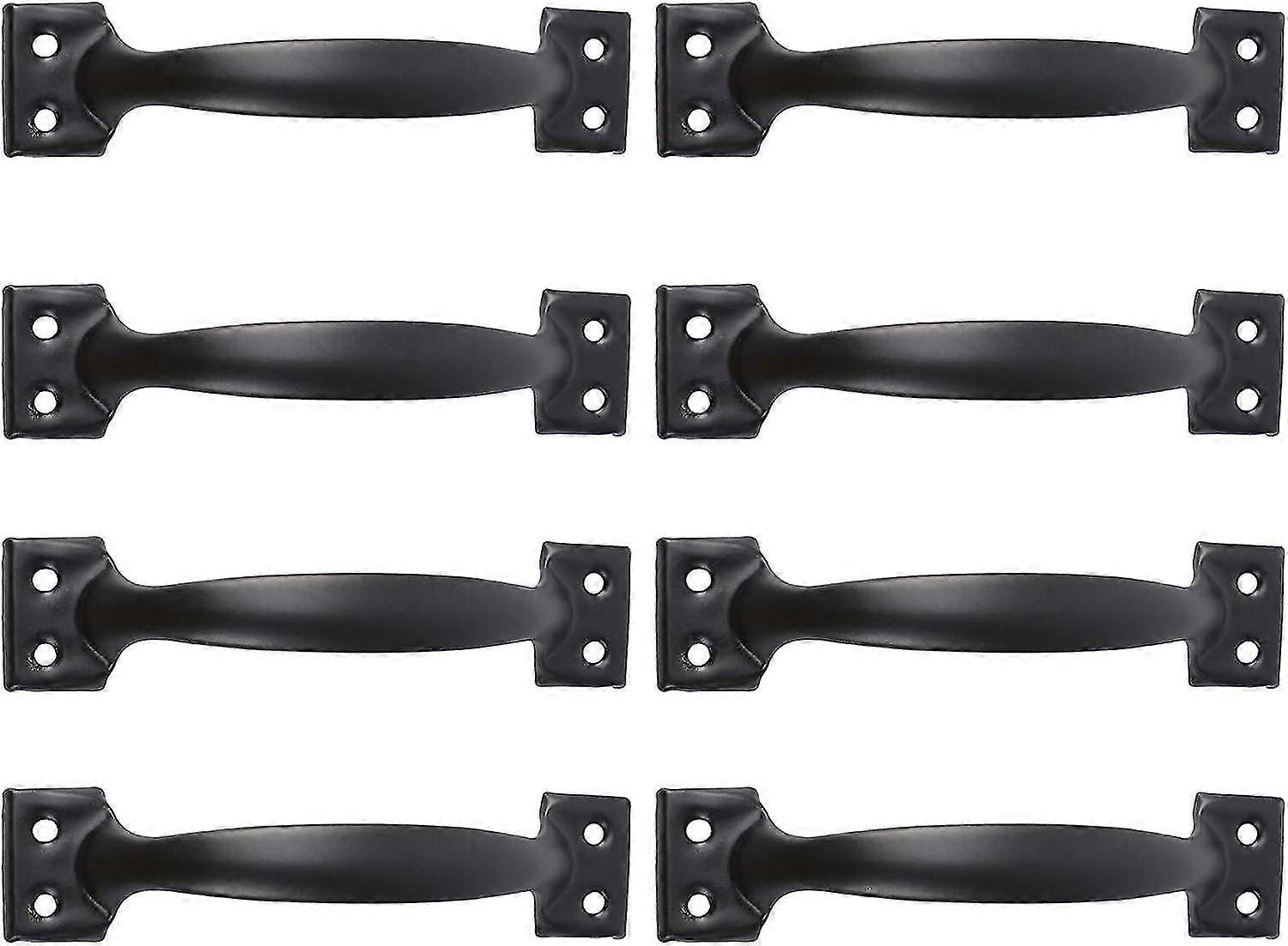 8 Pack Black Barn Door Handles for Wooden Fences - 6" Vintage Pull Handle for Kitchen Cupboard, Drawer, Cabinet (Black, 6")