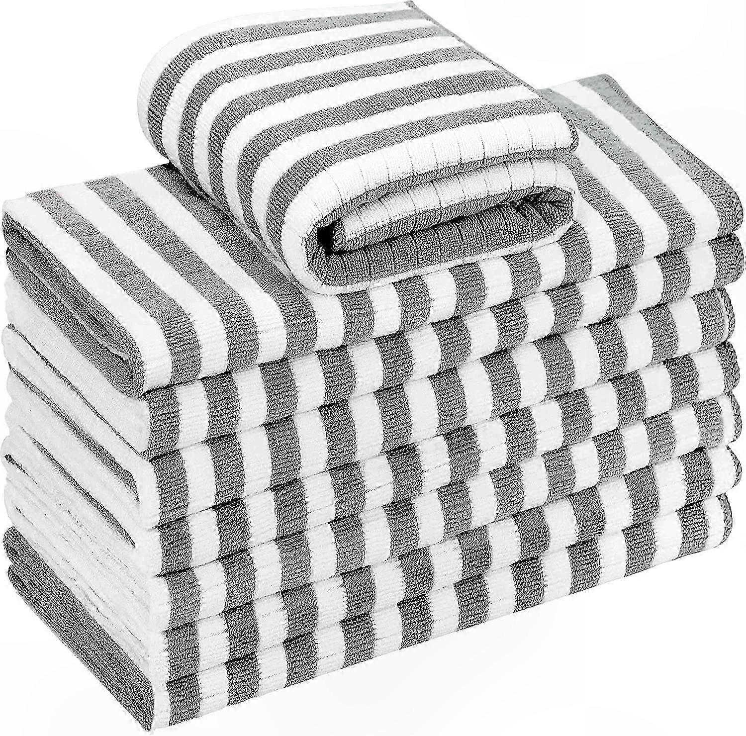 8-Pack Super Absorbent Microfiber Kitchen Towels, Soft & Thick with Hanging Loops, Check Pattern, 66 x 45 cm, Grey
