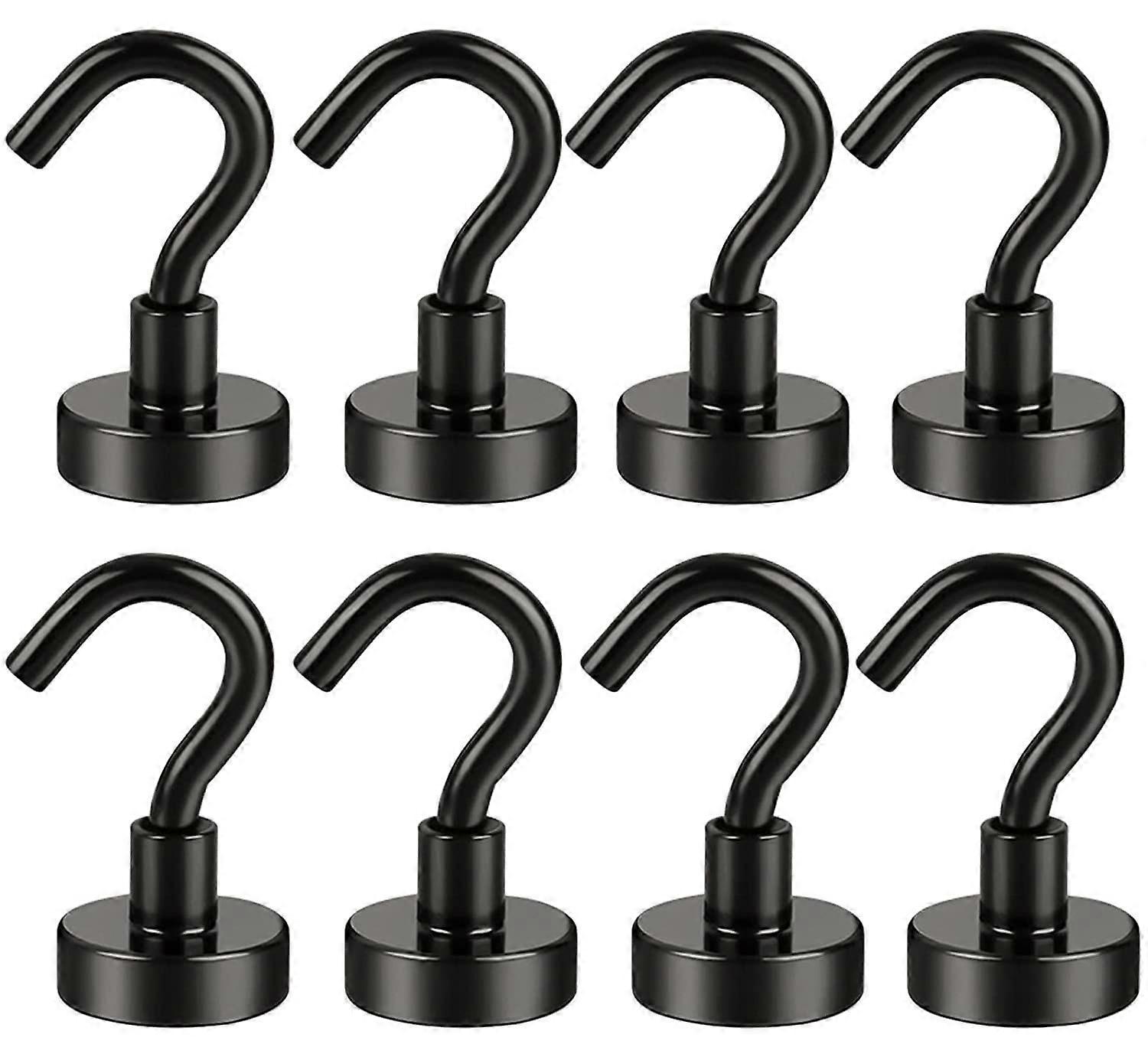 8 Pack Black Magnetic Hooks Heavy Duty, 22 LBS Strong Magnets with Metal Hooks for Refrigerator, Super Cruise Hooks for Hanging, Magnetic Hanger for K
