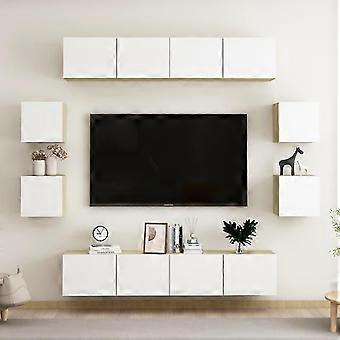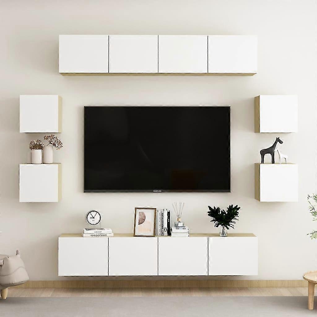 8 Piece Tv Cabinet Set White And Sonoma Oak Chipboard