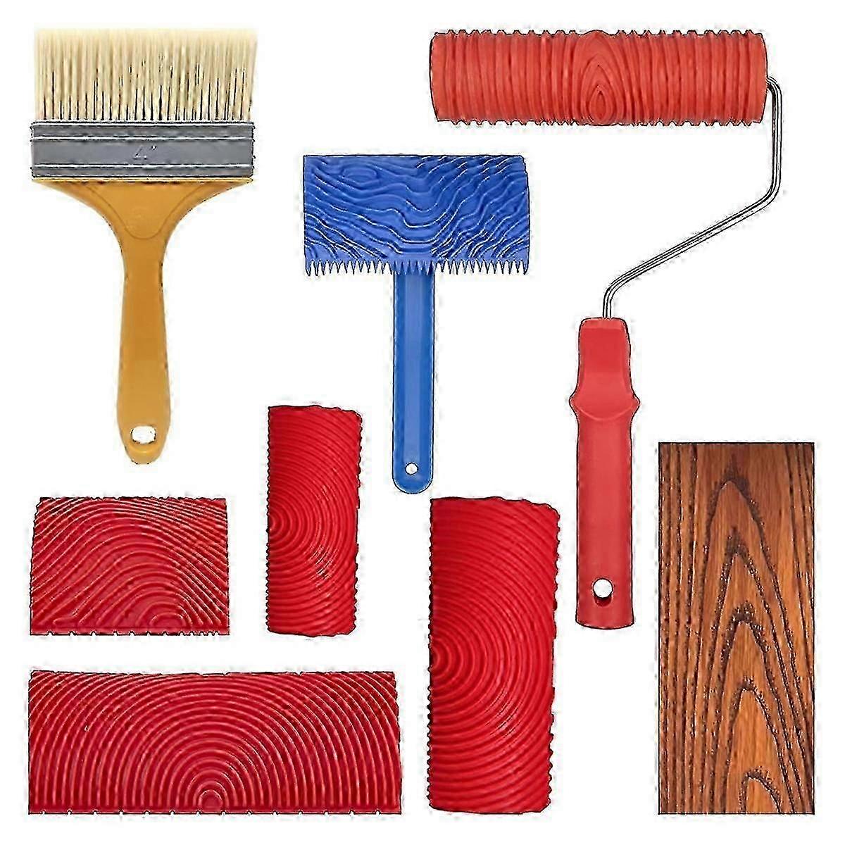 8Pcs Wood Grain Tool Set Wood Texture Paint Tool DIY Rubber Wood Pattern Painting Roller for Wall Room Art Decoration DS
