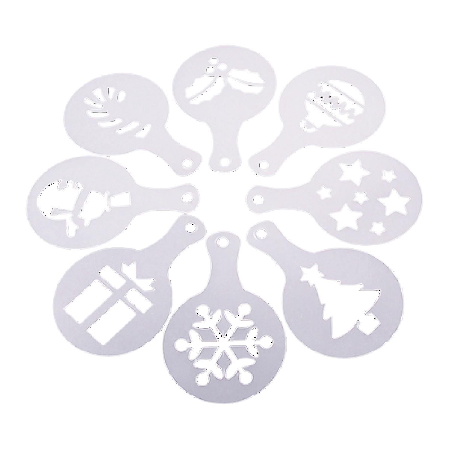 8Pcs Coffee Mold Christmas Pattern Portable Plastic Latte Coffee Decorating Stencil for Coffee Shop