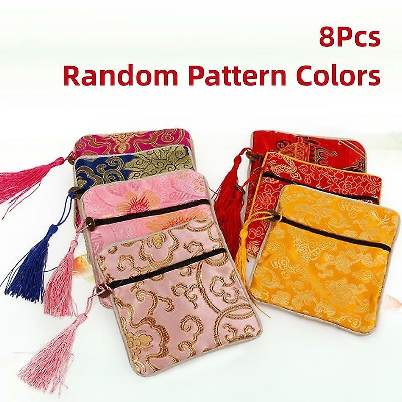 8Pcs Jewelry Storage Bags Tassel Chinese Embroidery Pouch Purse Jewels Organizer