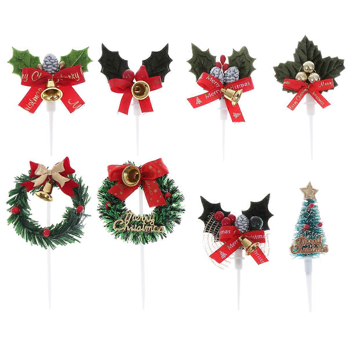 8pcs Chic Xmas Themed Cake Toppers Cake Picks Christmas Lovely Cupcake Decor Party Supplies for Birthday Festival Mixed Delivery