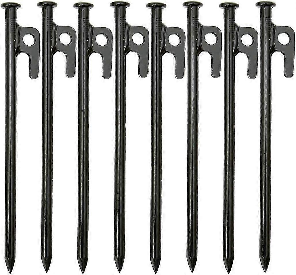 8Pcs Heavy Duty Tent Pegs, 20CM High Strength Forged Steel Camping Tent Stakes with Hook and Hole