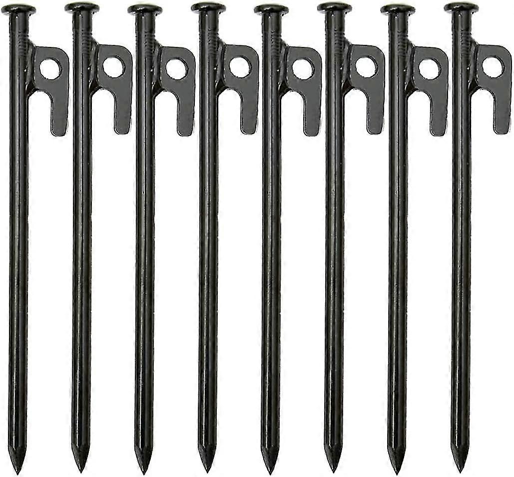 8 Pieces Heavy Duty Tent Pegs, 20cm High Strength Wrought Iron Camping Tent Stakes With Hook And Hole For Outdoor Travel Hiking Gardening Large Rocky