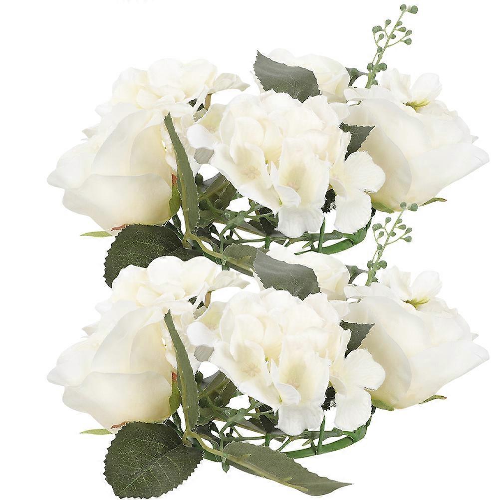 8Pcs Artificial Candle Wreath for Decoration White Rose Front Door Wreath
