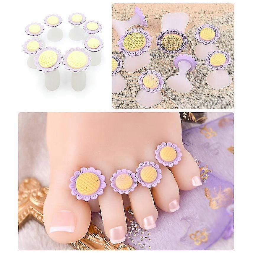 8 Pcs/pack Toe Separator Cute Soft Silicone Toes Lock Tools Daisy Heart Shaped Rhinestones Nail Art Japanese Style