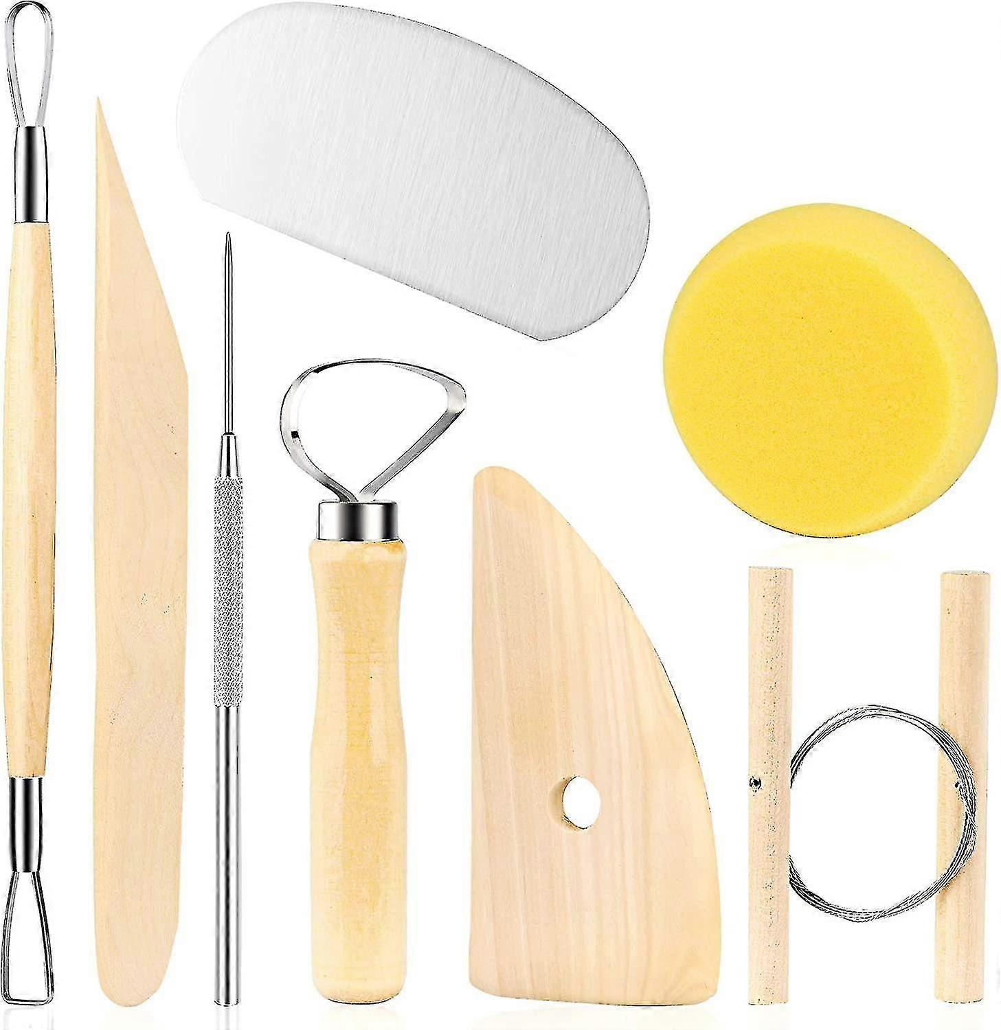 8 Pcs Wooden Pottery Sculpting Clay Cleaning Tool Set, Includes Clay Cutting, Modeling, Trimming Tools, For Beginner Level Pottery And Smoothing