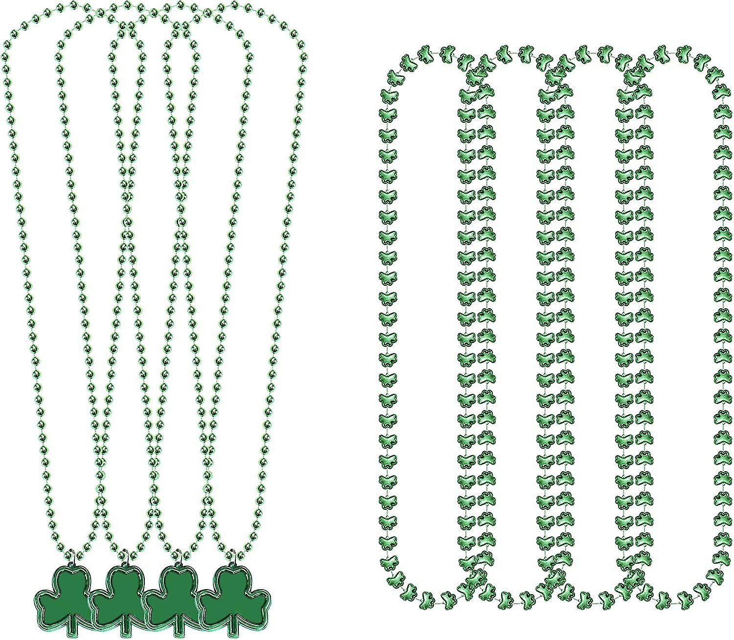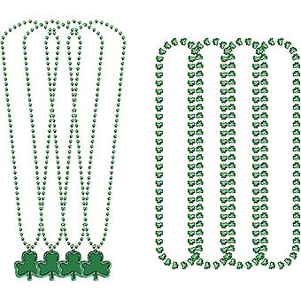 8 Pcs St Patricks Shamrock Necklaces Irish Clover Green Bead Pendant Necklace, St. Patrick's Day Party Supplies, Necklace Dressing-up Accessories, Sai