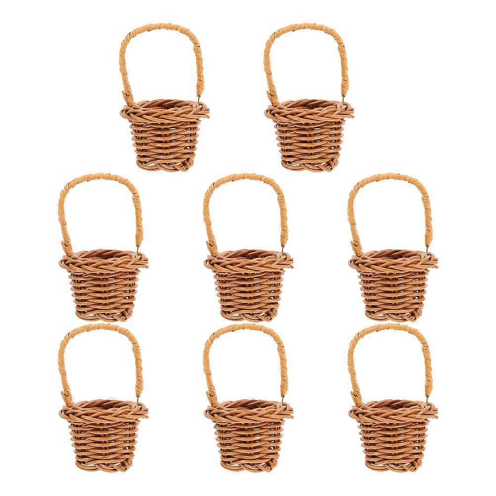 8pcs Mini Woven Rattan Baskets with Handles for Dollhouse, Fairy Garden Decor & Party Craft Storage – Handmade Tiny Baskets for Creative Displays &