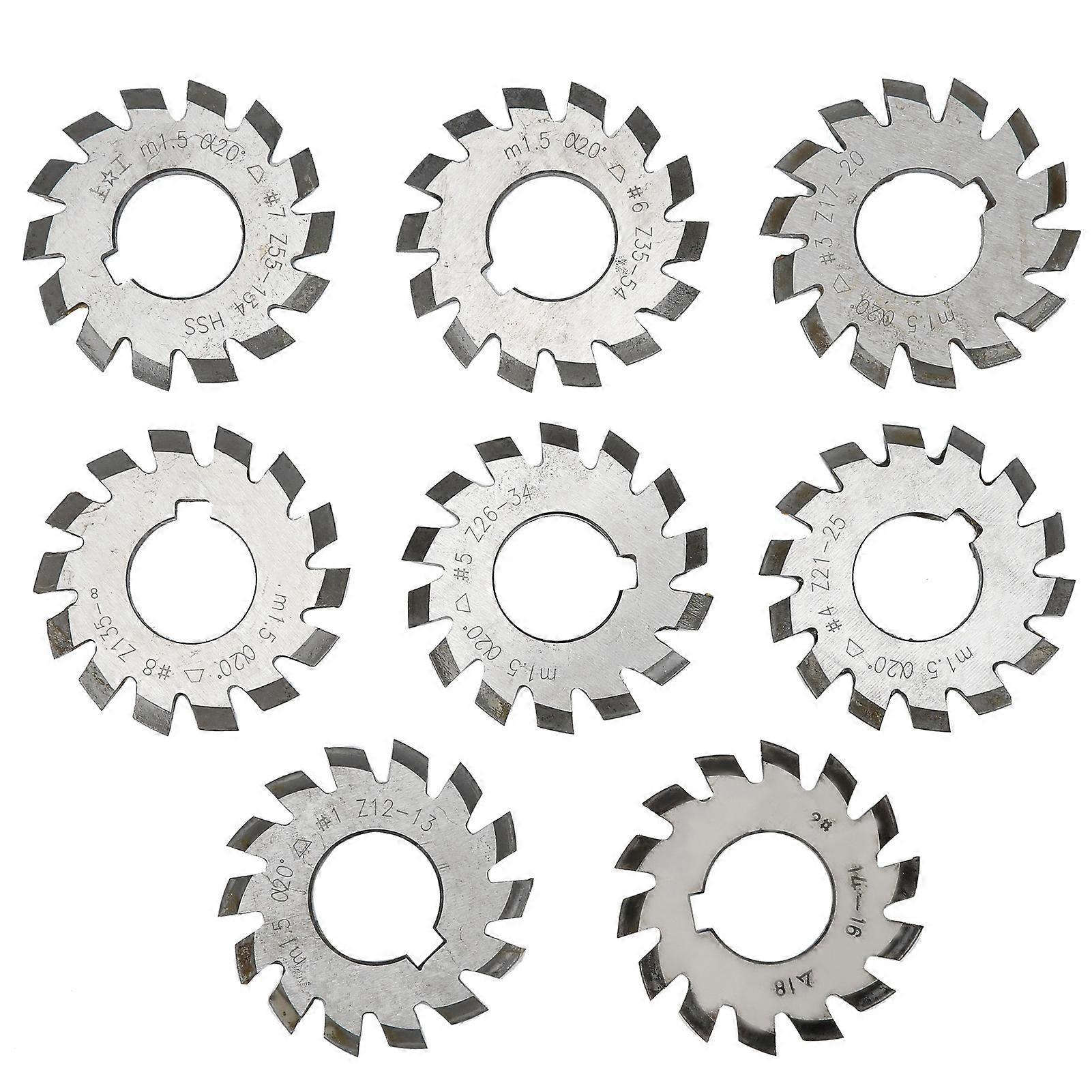 8Pcs Gear Cutter High Speed Steel Cutting Tool Industrial Supplies M1.5 20° 5mm 6mm
