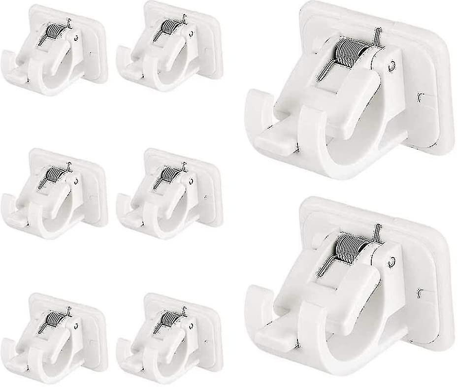 8 Pieces No Drill Rod Holders, Self Adhesive Curtain Rod Holder, Drapery Hook Holders, Curtain Rod Holder With Spring Buckle For Home, Bathroom, Hotel
