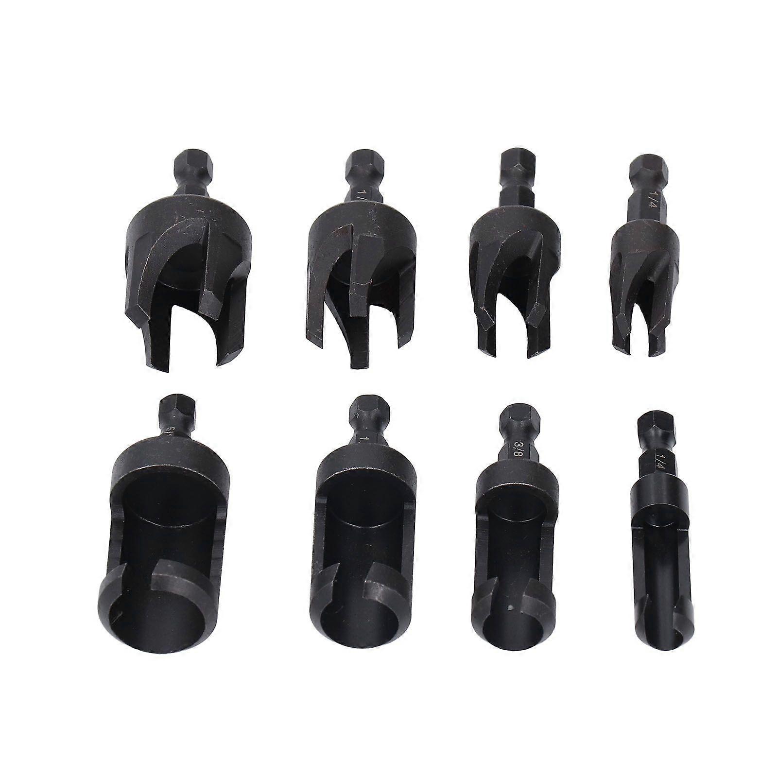 8 Pieces Wood Hole Drill Bits Carbon Steel Hex Shank Straight and Tapered Plug Cutter Set 1/4in 5/8in 3/8in 1/2in Black