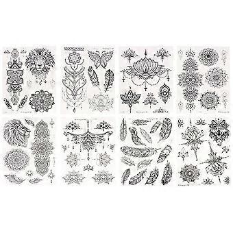 8pcs Mandala Tattoo Sticker Waterproof Exquisite Durable Mandala Tattoo Decal For Ankle Shoulder Collarbone