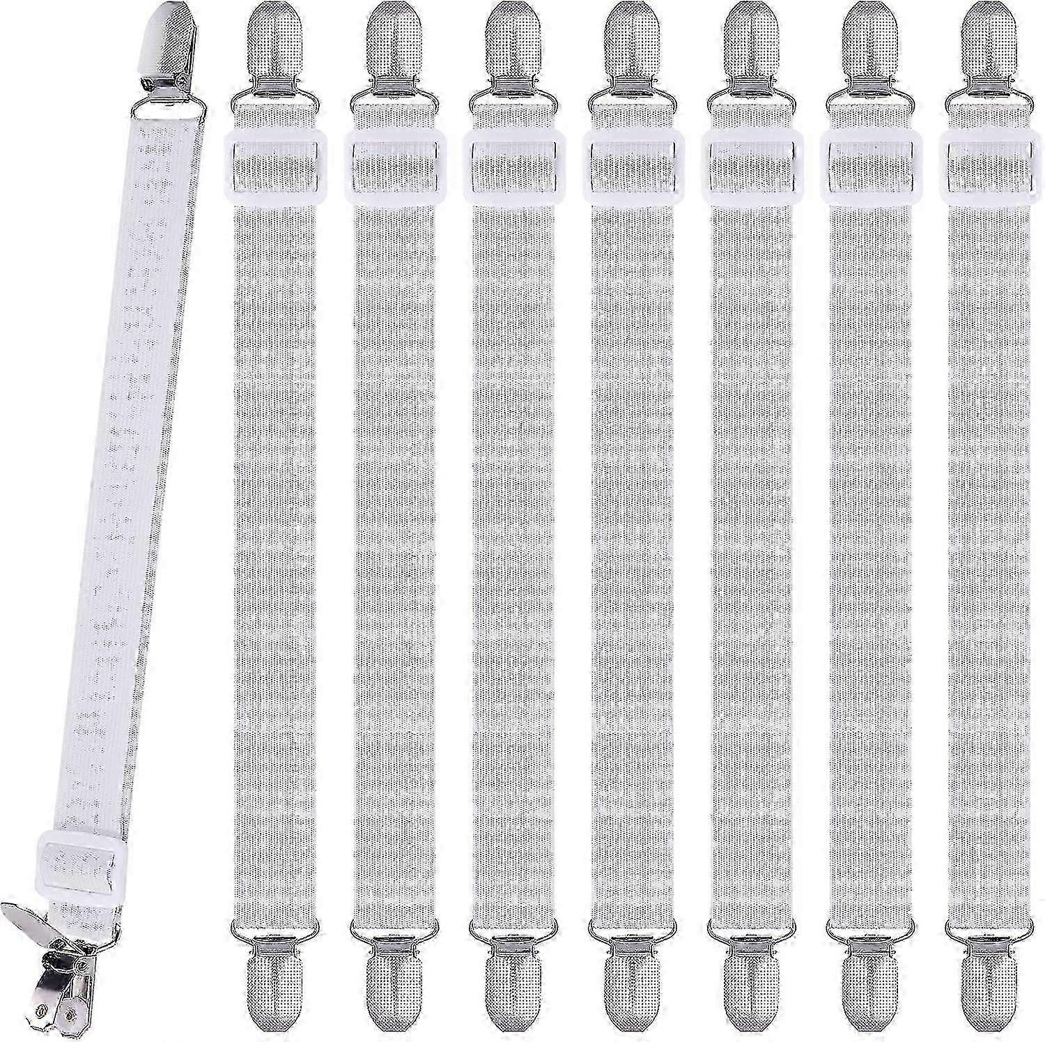 8Pcs Bed Sheet Clips, Adjustable Bed Sheet Grippers, High Elastic Fitted Sheet Straps with Clips, Bed Sheet Fasteners Max Stretch 120cm, Sheet Holders