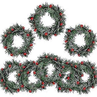 8 PCS Holly Berry Candle Ring Small Artificial Red Berries Pine Needles Wreath compatible with Chris