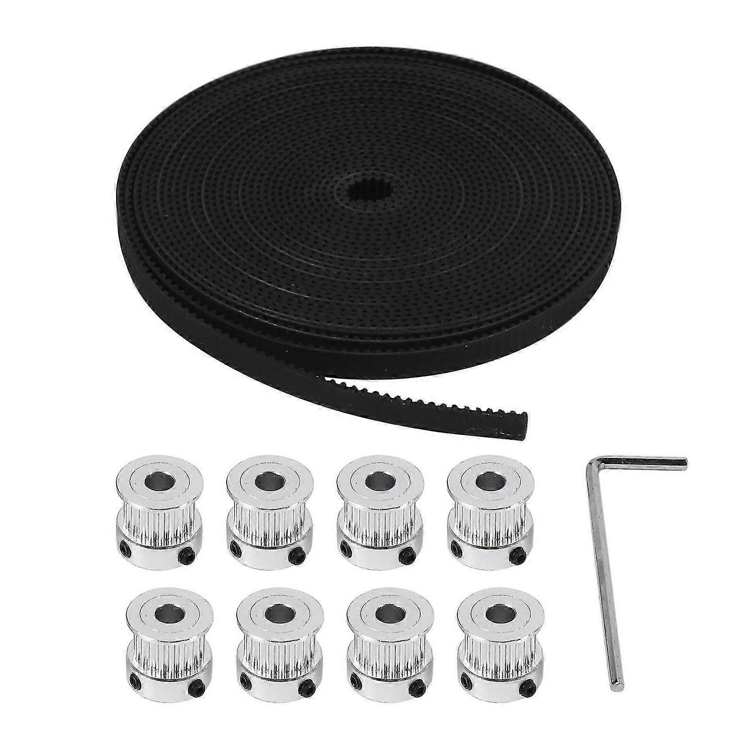 8Pcs 5mm 20 Teeth Aluminum Timing Pulley Wheel+5 Meters Rubber GT2 2mm Pitch 6mm Wide Timing Belt fo