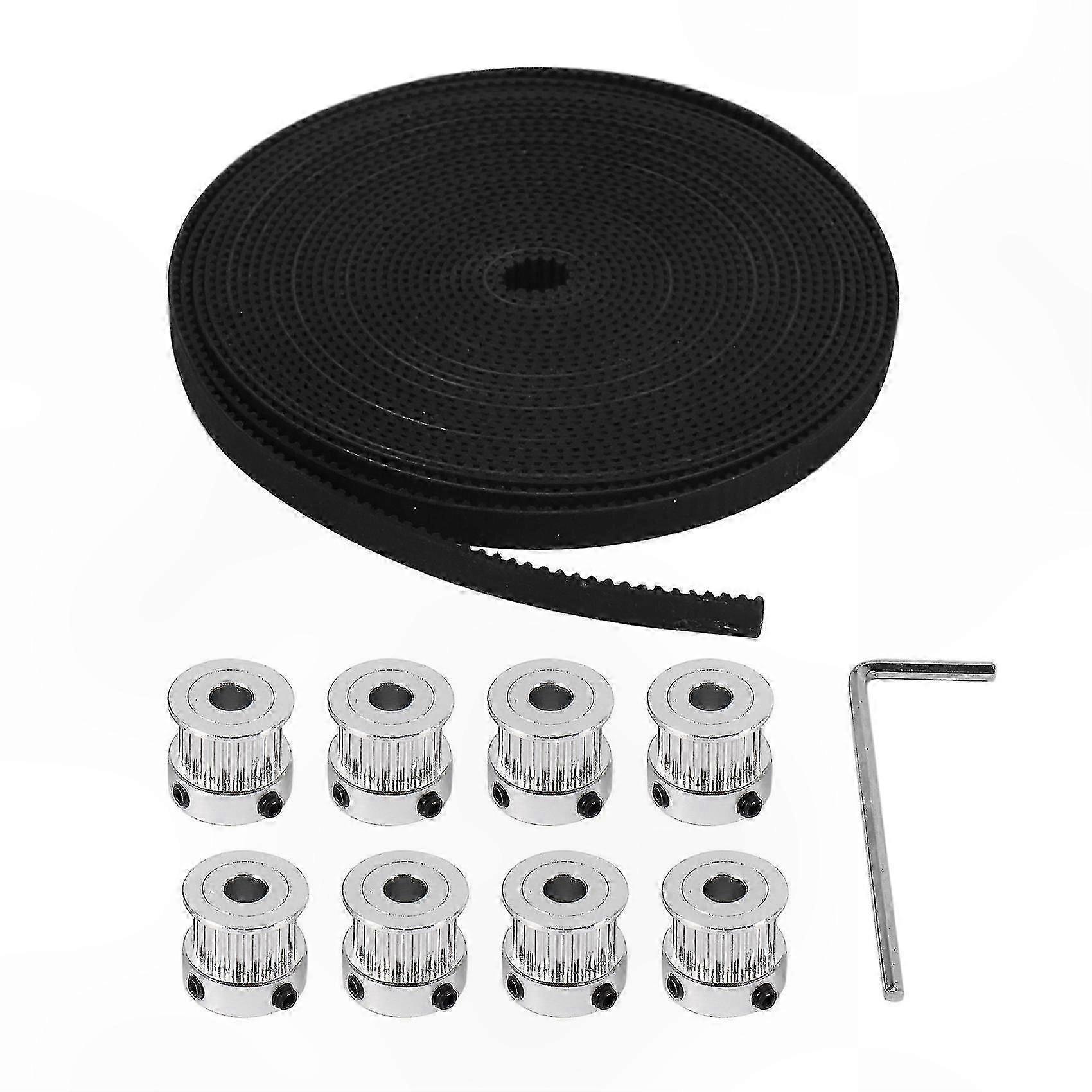 8 Pieces 5mm Bore 20 Teeth Aluminum Timing Pulley Wheel with 5m GT2 Rubber Belt 2mm Pitch 6mm Width
