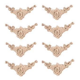 8pcs 8 X 8cm Wood Carved Corner Onlay Applique Door Cabinet Unpainted European Style