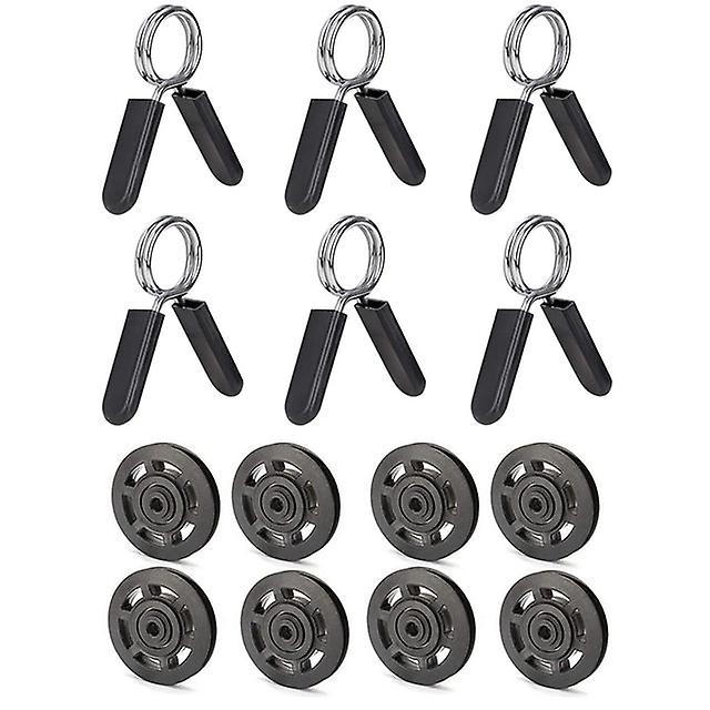 8Pcs 95mm Black Bearing Pulley Wheel Cable & 6 Pack 1 Inch (25 Mm) Barbell Clip Clamps-dumbbell Spring Collars