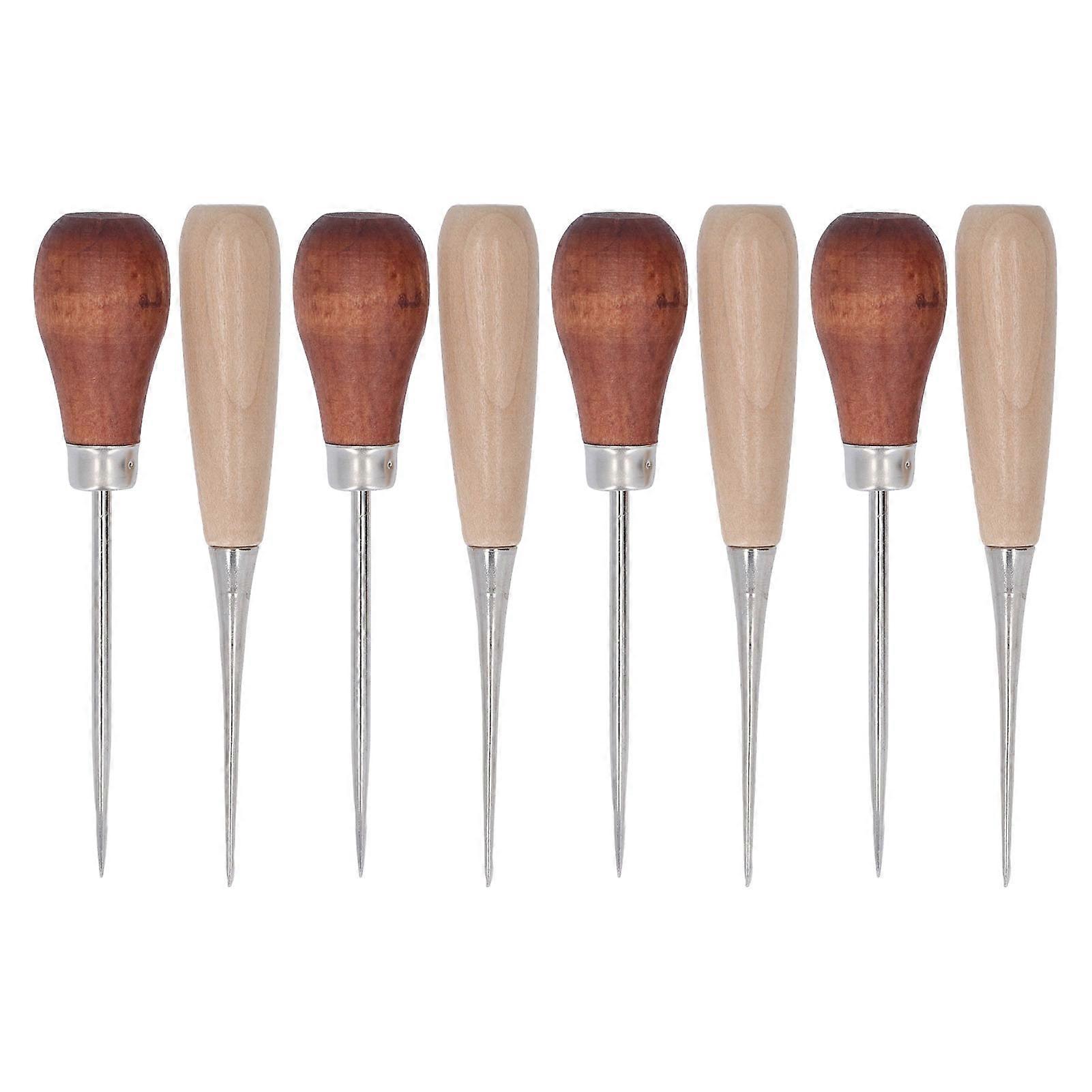 8Pcs Leather Awl Wooden Ergonomic Handle Stainless Steel Effort Saving Multifunction Awl Tool for Leather Shoes DIY