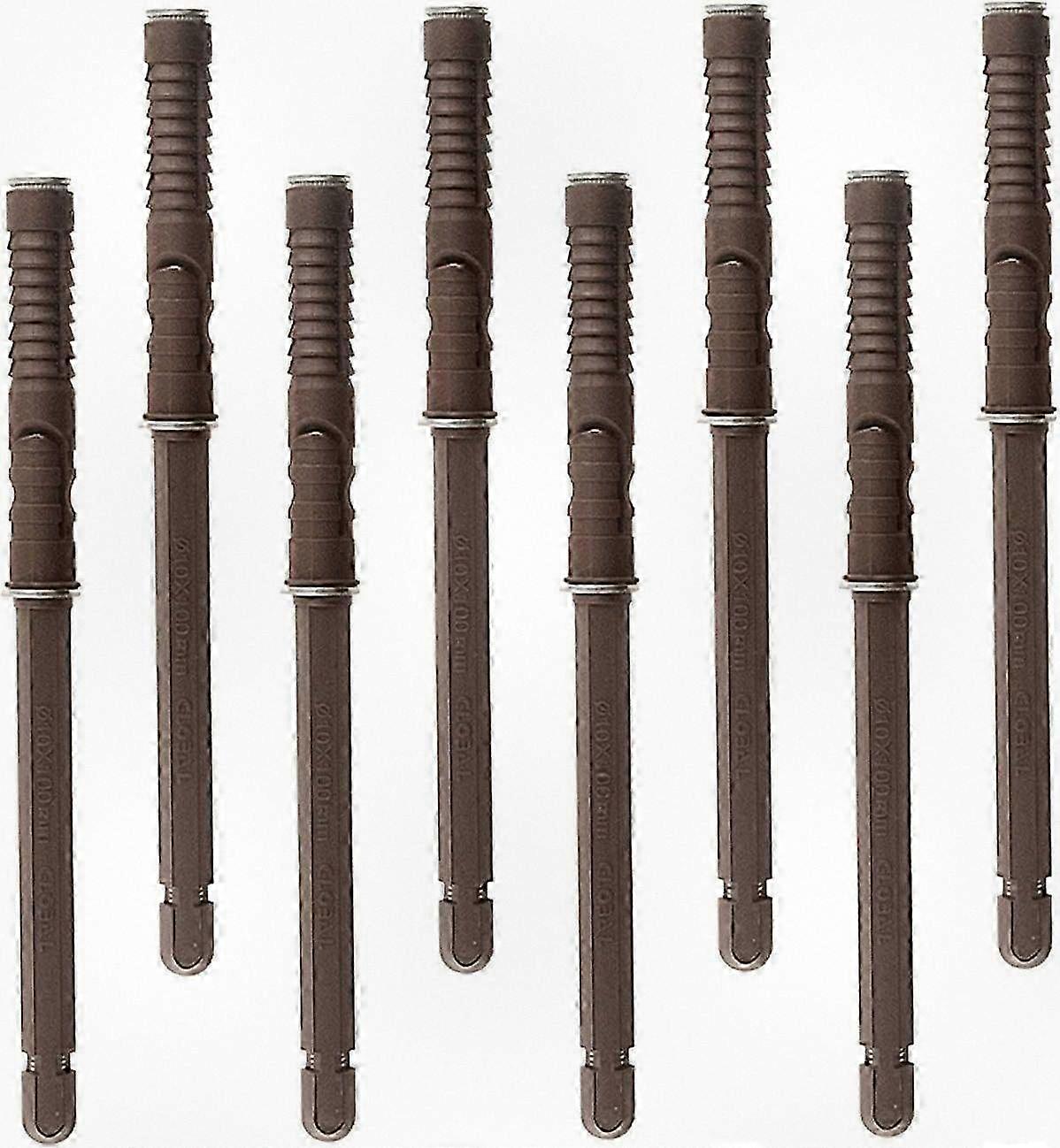 Ideal for supporting custom floating shelves, these concealed brackets offer stylish storage to enhance home organization. **Key Features:** - **Strong Load Capacity:** Supports up to 20 kg when properly fastened to studs in solid or cavity walls. - **Durable Construction:** Made of hardened iron with a plastic expansion tube for long-lasting use. - **Stable Design:** Hexagonal barbed support rod improves stability on wood or masonry surfaces. - **Versatile Use:** Suitable for bookshelves, retail displays, bathroom shelves, and more. **Installation Guide:** 1. Measure and drill holes (max depth: 72mm). 2. Insert the expansion tube, then tighten the support rod clockwise until secure. 3. For heavier shelves, use additional brackets to distribute weight (each holds 15 lbs). **Specifications:** - Material: Iron + plastic - Color: Brown - Weight: 300 g - Includes: 8 hidden brackets **Note:** Requires a 12mm drill bit. Install at least 2 brackets per shelf, ensuring level alignment. Place the silver metal ring on the expansion tube before embedding into the wall.