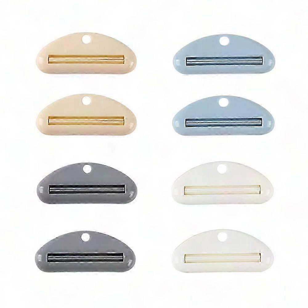 8-Piece Toothpaste Dispenser Set - Plastic Tube Squeezer for Toothpaste in Beige, Grey, White & Blue