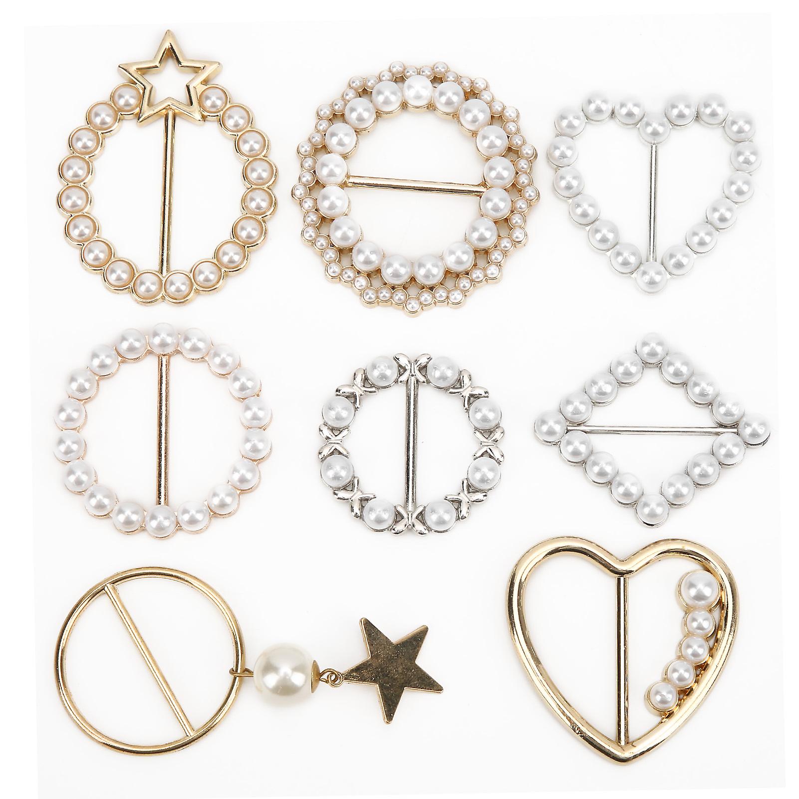 8Pcs Pearls Scarf Buckle Elegant Fashion Shiny Firm Stable Simplistic TShirt Clips