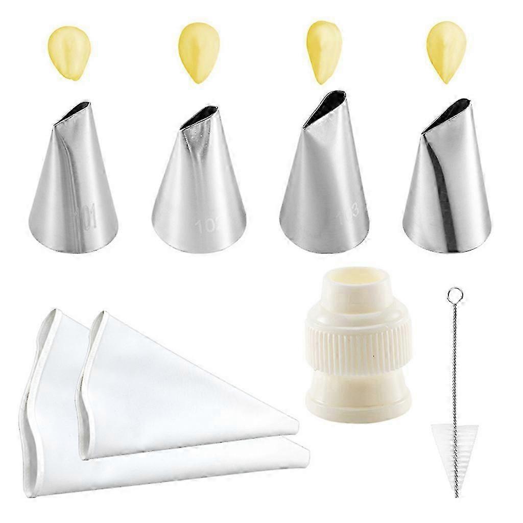 8pcs Cake Decorating Kits Waterdrop Cream Cupcakes Icing Tips Nozzles Pastry Bag White