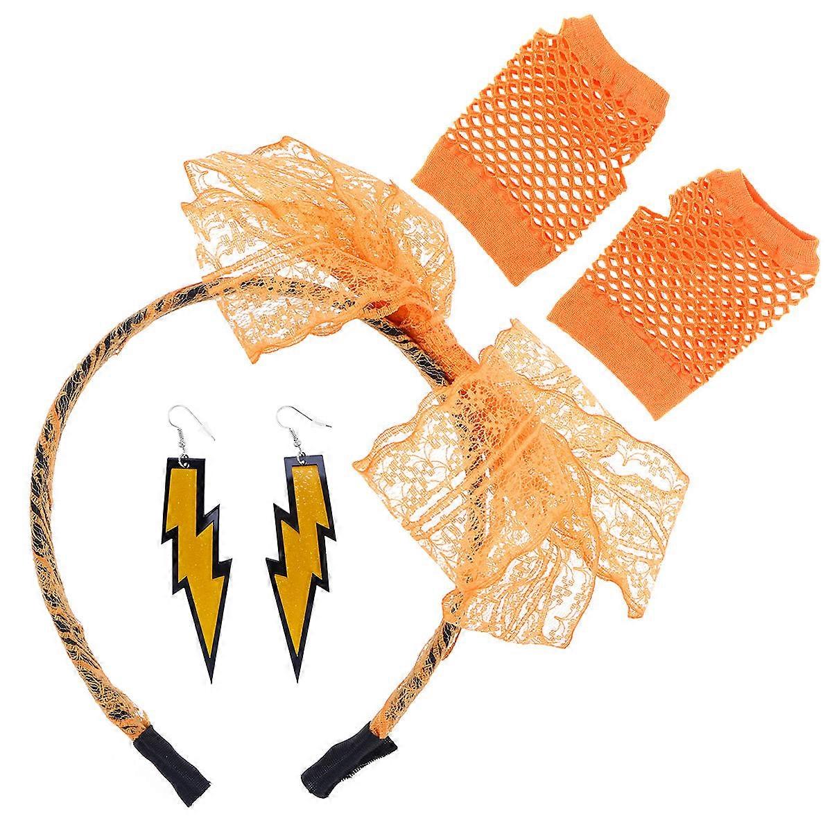 80's Lace Headband Neon Earrings Fingerless Fishnet Gloves for 80's Party(Orange)