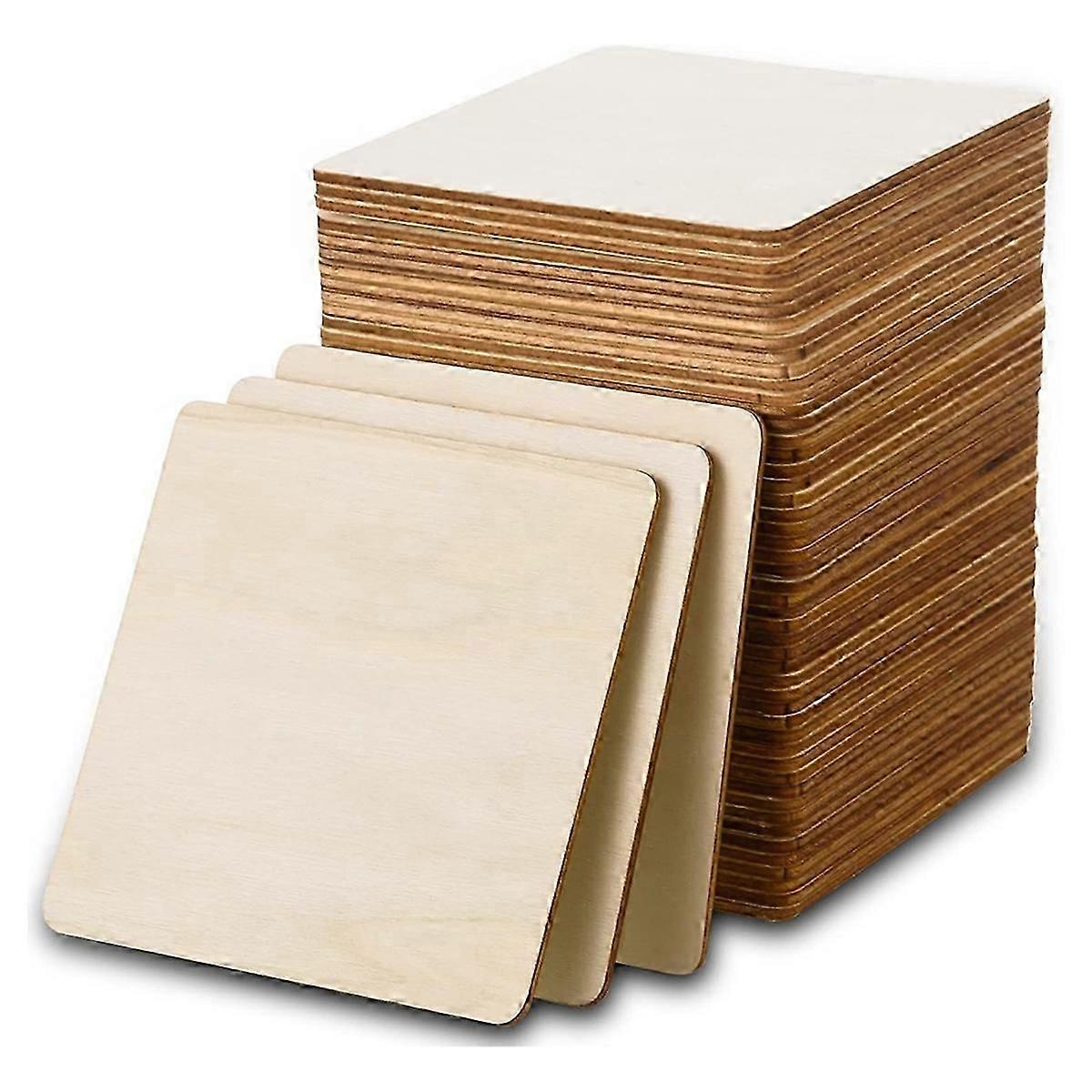 80 Pcs Unfinished Wood Pieces 4x4Inch Blank Wood Squares for DIY Crafts, Painting, Engraving, Holida