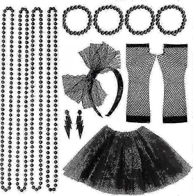 80s Fancy Party Costume Accessories Set,adult Tutu Leg Warmers Fishnet Pink Gloves Neon Necklaces Bead
